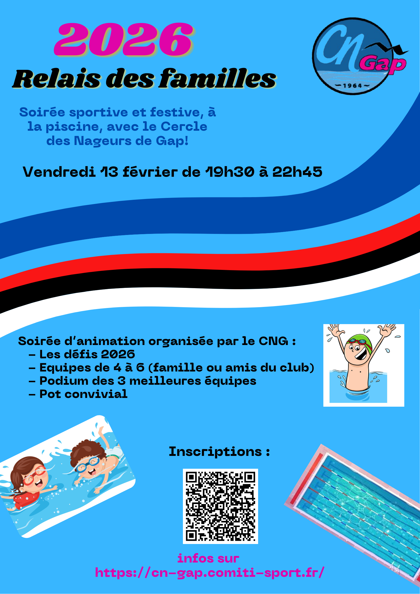 Relais des familles : vendredi 7 février de... Relais des familles : vendredi 7 février de 20h à 22h30 au stade Nautique...
